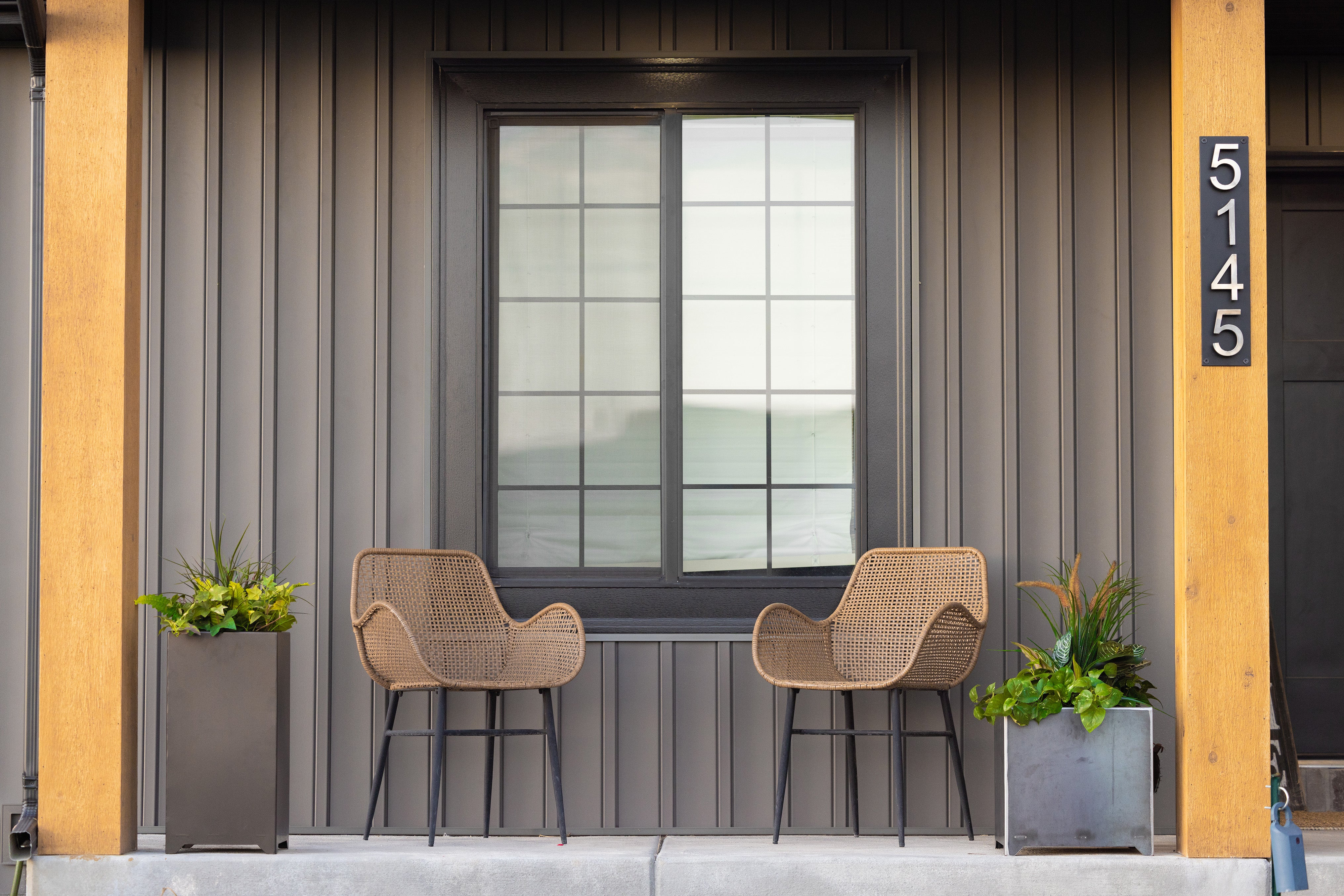 A metal address sign fabricated out of high-quality stainless steel for a modern aesthetic that elevates any home.